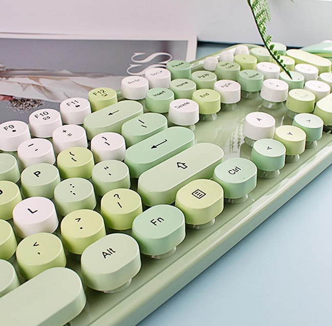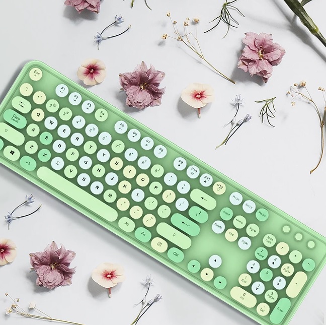 ست کیبورد و موس بیسیم MOFII رنگ سبز فانتزی ، کیبوردهای رنگارنگ رترو سبز ۲.۴ گیگاهرتزی، با کلیدهای گرد، ماوس بیسیم زیبا برای لپتاپ، کامپیوتر شخصی، کرومبوک، تلویزیون هوشمند، کامپیوتر، ویندوز