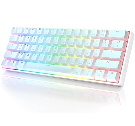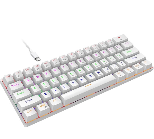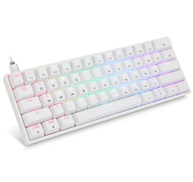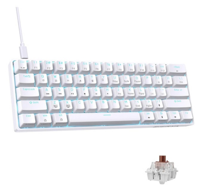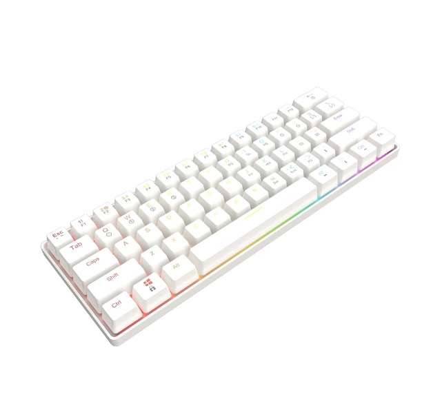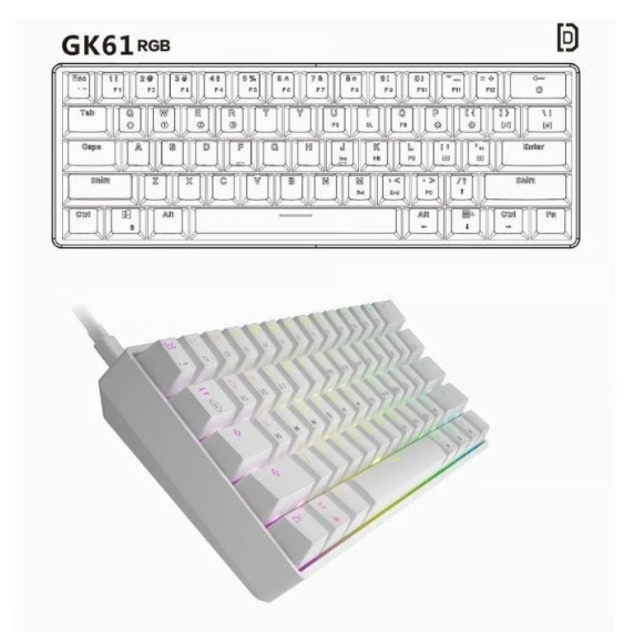 صفحه کلید مکانیکال hk gaming gk61 white سوئیچ قهوه ای رنگ کیبورد سفید